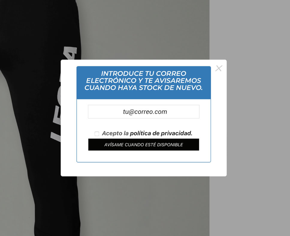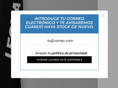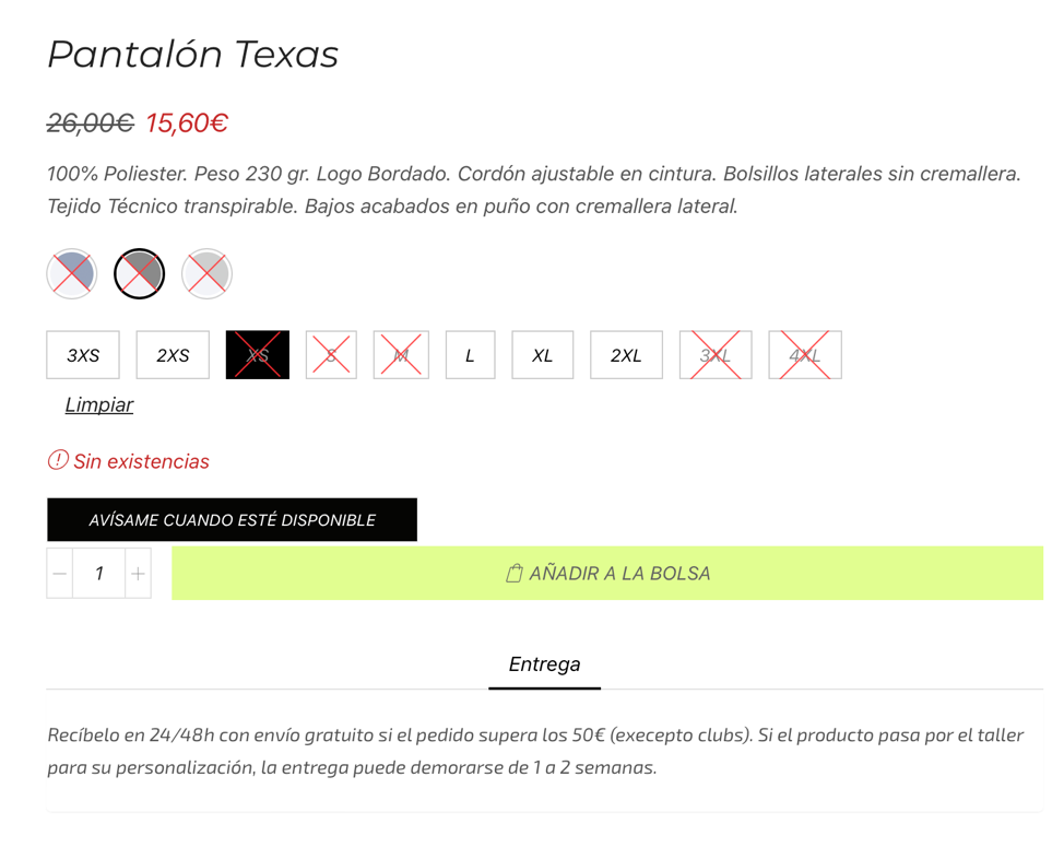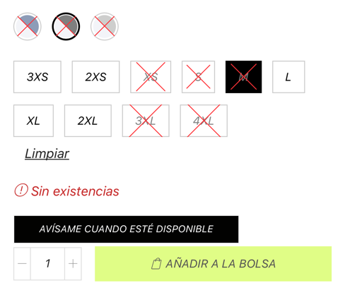 Para ello, selecciona la talla que necesitas y pulsa el botón Avísame cuando esté disponible.